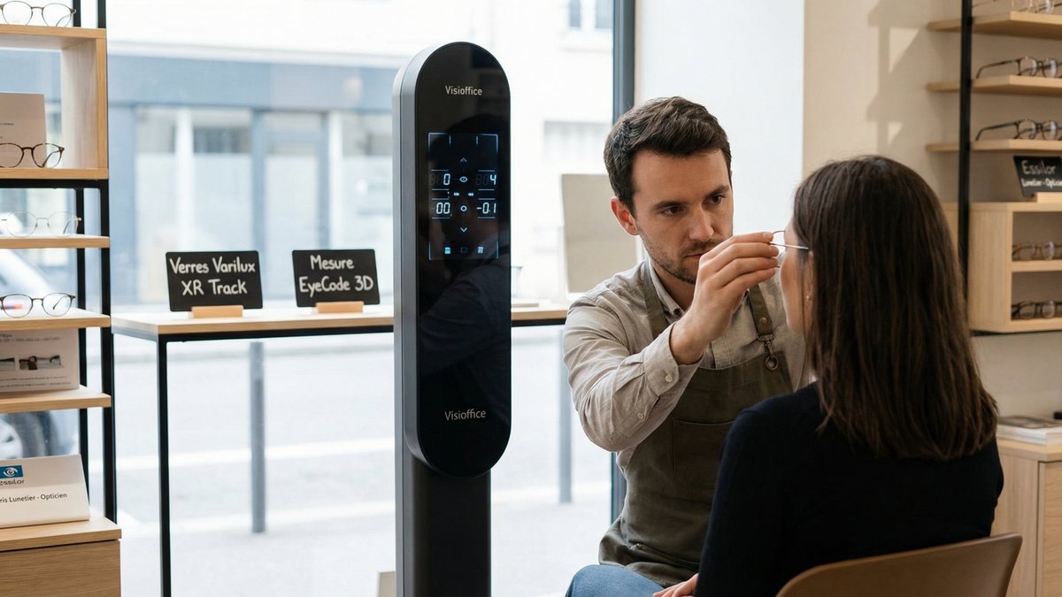 Pour qu'un Varilux XR Track tienne ses promesses, il faut des mesures au millimètre près. C'est là que les outils comme l'EyeCode et les colonnes de prise de mesures prennent tout leur sens. Sans eux, on met un moteur de Formule 1 dans un châssis de trottinette.